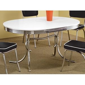 Coaster 50's retro nostalgic style oval dining table, chrome platedi seriously adore this table. Only draw again is the white table best. Oh and you do require ample space for this table as the legs are not straight down. I am super happy with this table and will advise it to some others. The table was reaosnably priced. I just never truly feel like sending back another table i entirely assembled because this has now happened two times so i am heading to retain the damaged table.