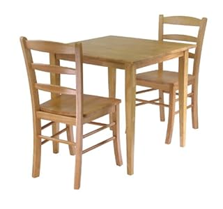 Winsome's new Groveland Good Wood 3-piece Dining Set in Light Oak Finish. The table is 29-one/two-inch Square with Shaker design and style legs. The ladderback chairs are pretty sturdy stable and effortless to assemble.