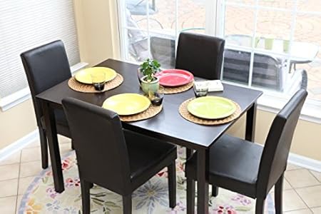 Features of 5 PC Black Leather 4 Person Table and Chairs Brown Dining Dinette - Black Parson Chair