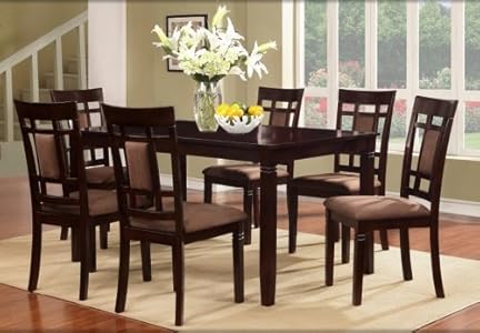 The Place Style 7pc dining table set is swish and tough, six dining chairs upholstered in a cocoa microfiber seats and a middle insert alongside the chair back. Make this yours today to embellish the elegance of your dining room!