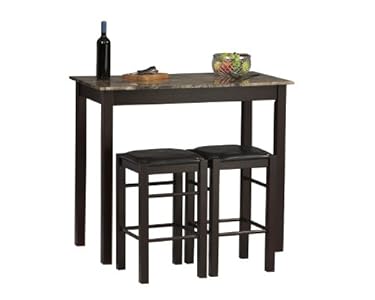 But i was established to discover a lower priced table and stool set for my empty area in my kitchen. I have dark cherry cupboards so it was challenging to choose the ideal coloration and fashion of table set to go in the kitchen area. This expresso table set has a hint of pink hue to it an looks good. And the marble-ish tan table leading matches good with the identical style and coloration of my kitchen backsplash. The table and stools truly feel sturdy and comfortable to use.