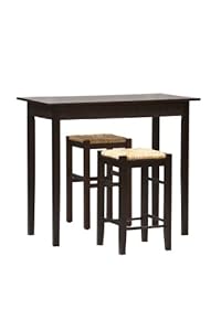 Tavern 3 Piece Counter Set with room conserving convenience. This set capabilities a easy rectangular table on lengthy durable legs with two backless counter top stools with rush seats. Designed from reliable woods and MDF, and topped off with a prosperous Espresso finish. Stools tuck neatly less than the desk when not in use.