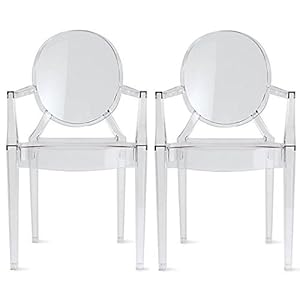 Features of 2xhome - Set of 2 Modern Ghost Chair Armchair with Arm Polycarbonate Plastic (Clear)