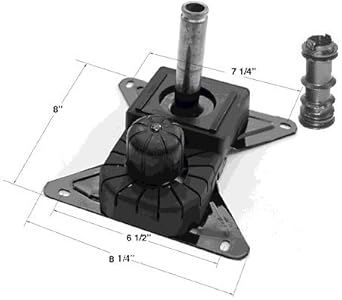 Replacement OEM Chromcraft kitchen & dinette chair swivel and tilt with plastic insert. Plate measurement 8'x8 one/4'. Mounts six one/2'front x 7 1/4'rear. 1' dia shaft.