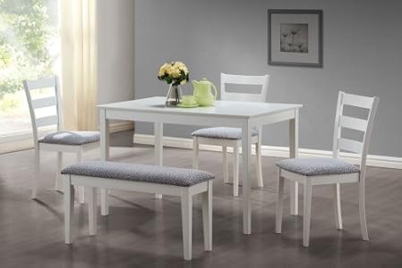 This everyday dining set is the excellent option for tiny kitchens or dining spaces. The sleek rectangular dining desk capabilities tapered square legs that adds a modern-day appeal. The side chairs have horizontal curved again slats and are upholstered in a padded two tone material. Not only is the bench perfect for compact spaces, it concludes the exceptional and fashionable glimpse of this dining ensemble. Completed in a crisp white, this interesting modern day 5 piece dinning set is a great addition to any dwelling or apartment.