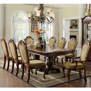 Elegant and luxurious, this Napa 9-Piece Dark Cherry Dining Table Set sets the tone for a official and festive dining expertise. Fantastically crafted and supported by exquisitely carved double pedestals, the table features two expandable 15' leaves and pairs exquisitely with its matching upholstered chairs. Excellent for gatherings and entertaining, this set is the supreme in sophisticated official dining.
