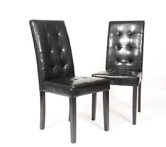 Features of Roundhill Furniture Solid Wood Leatherette Padded Parson Stitches Design Chair, Black, Set of 2