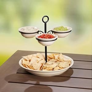 Conclusion of Two Tier Gourmet Stoneware Chip and Dip Sauce Buffet Server