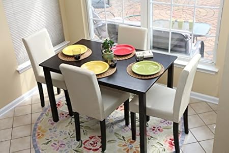 Features of 5 PC Ivory Leather 4 Person Table and Chairs ivory Dining Dinette - Ivory Parson Chair