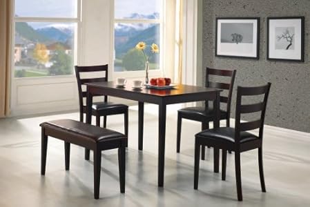 This 5 Laptop dining set functions a 36' bench and is finished in cappuccino. The team comes in 1 pack as revealed. Material Shade Darkish Brown Finish Cappuccino