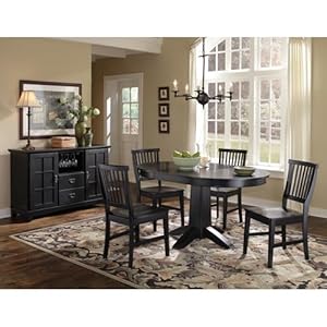 The arts and crafts 5 piece round dining set is an inexpensive alternative able of adapting to a wide variety of options. Made of hardwood solids and veneers. Comes in a multi-stage black finish. The round dining table can be accessorized either formally or informally to generate any desired ambiance. The sixteen-inch leaf expands the table best from 42-inch to fifty eight-inch, supplying ample place for two added chairs. The arts and crafts dining chairs are produced of hardwood solids and can be ordered, in addition to the 4 incorporated in the set, in two pack portions. 5 piece set features the dining table and four dining chairs. Effortless to assemble. Table steps fifty eight-inch width by 42-inch depth by thirty-inch height. Chair actions seventeen-3/4-inch width by 22-1/four-inch depth by 37-three/four-inch peak.