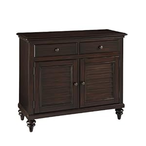 Inspired by the fusion of British colonial and old planet tropical structure, the Bermuda Buffet by Home Styles highlights mahogany solids and veneers in a deep, Espresso end. Further more inspiration can be uncovered in the shutter style built doorways and the turned toes. Bounteous storage is supplied with two adjustable cabinets powering just about every door and two significant storage drawers with dividers and felt-lined bottoms. Beautifully accented with antique brass hardware. Dimensions: 43w 18d 36.5.