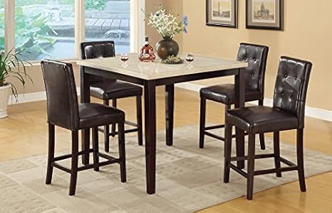 Features of Counter Height Table With Faux Marble Top and 4 High Chairs