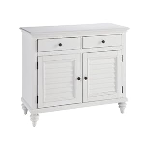 Inspired by the fusion of British colonial and outdated globe tropical style, the Bermuda Buffet by Home Styles highlights hardwood solids and engineered wood in a designer seen brushed stroke white end. Even further inspiration can be found in the shutter design and style created doorways and the turned ft. Bounteous storage is furnished with two adjustable cabinets at the rear of just about every doorway and two massive storage drawers with dividers and felt-lined bottoms. Beautifully accented with antique brass hardware. Measurement: 43w 18d 36.5.