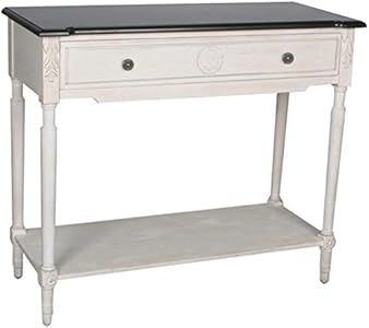 - The antique white finish of the base complemnts the black wood tabletop, and creates an elegant accent to your home