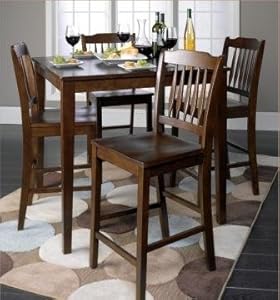 This 5 PC Wood Counter Height Pub Set is a perfect addition to any household. This set consists of a table and four stools, every single is crafted durably with wood and characteristics a attractive cappuccino finish. 4 stools with straight front and a little curved back legs offer you balance, which are daring and stunning. Flat seat and cozy back again convey class to the exceptional regular design.