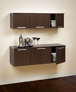 Prepac coal harbor espresso wall mounted buffet and hutch. We've had alot of favorable feedback on it, the sleek fashionable traces and the wall mounted feature. Considered it could be a small larger in width and peak to accomodate taller bottles of liqour/liquer/wine.